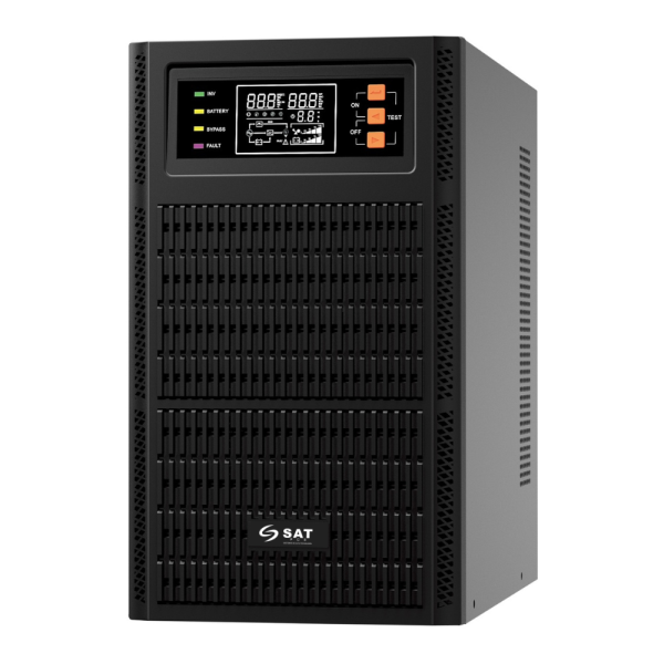 UPS Online Monofásico SAT UOL3000+LCD de 3000 VA y 3000 W asegura protección continua para equipos críticos, con 8 tomas de respaldo y onda senoidal pura. Ideal para oficinas, data centers, hospitales e instituciones educativas, proporciona hasta 7 minutos de autonomía para un apagado seguro o continuidad operativa.